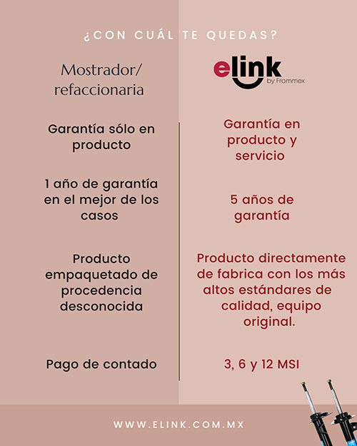 Al comprar amortiguadores en línea, también tienes la posibilidad de comparar diferentes opciones antes de tomar una decisión. Esto puede ser muy útil si no estás seguro de qué amortiguador elegir. Puedes comparar precios, especificaciones técnicas, opiniones de otros usuarios, entre otros aspectos. En elink.com.mx, podrás encontrar herramientas de comparación para facilitar esta tarea.